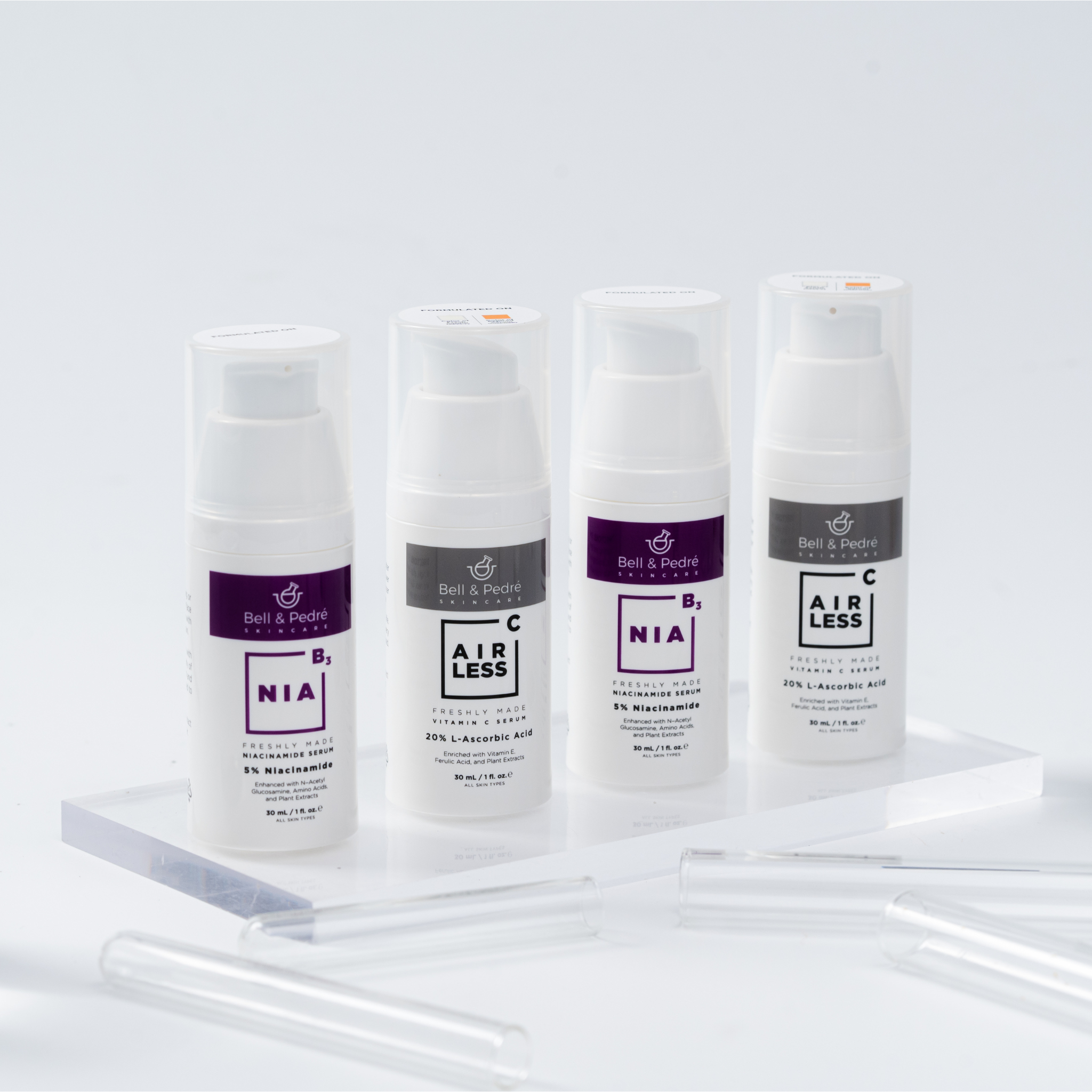 At Bell and Pedré Skincare, we embrace freshness by formulating our products only upon your order. We never formulate in advance or stock up on our shelves. Our small-batch, fresh formulations are packaged in special air-restrictive, opaque containers to preserve freshness over time, guaranteeing each active ingredient functions at its full potential. Your skin receives maximum nourishment with every application, revealing healthier, glowing skin.